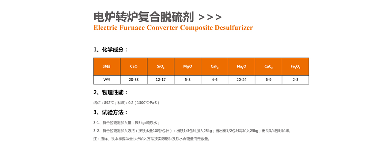 • 電爐轉爐復合脫硫劑